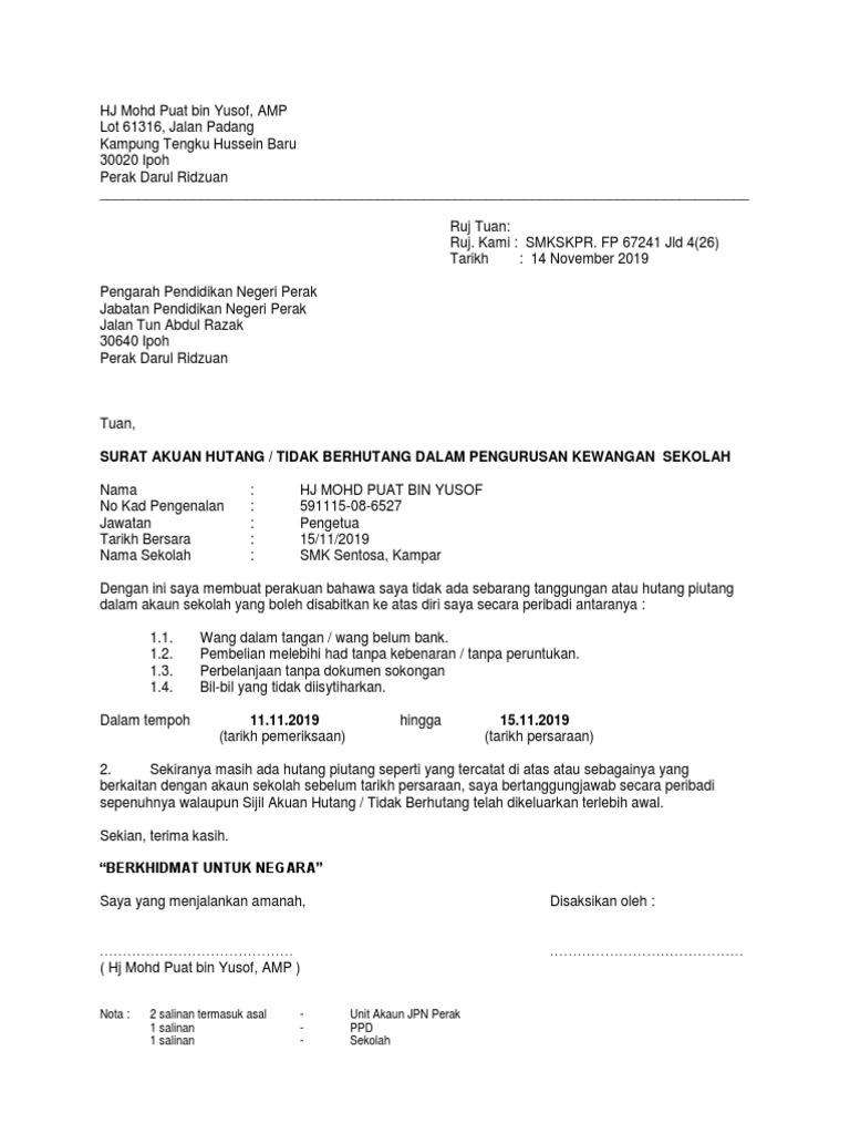 Surat Akuan Hutang Akaun Sekolah Pdf